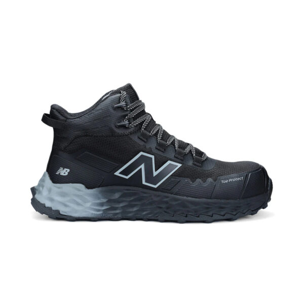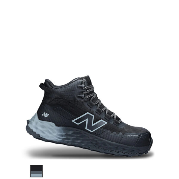 This image shows 01-FXD-Composite-Zip-6inch-Boot-WB5-black-cpy-b.jpg A black and gray work boot with a mesh upper, green laces, and a rubber sole